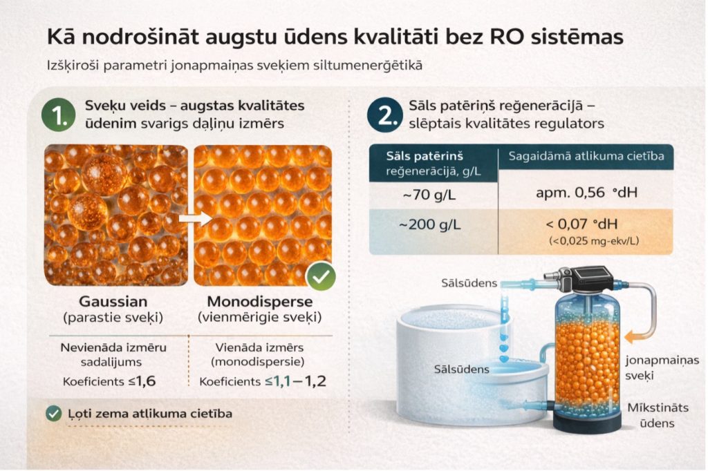 Tātad, pat ar esošo iekārtu, pareizi iestatot reģenerāciju, iespējams sasniegt kvalitāti, ko bieži kļūdaini piedēvē tikai RO tehnoloģijai.