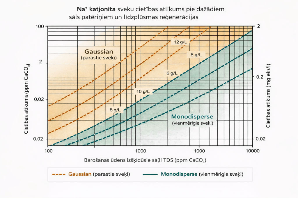 Otrs kritiskais parametrs ir sāls patēriņš uz 1 litru sveķu reģenerācijas laikā.